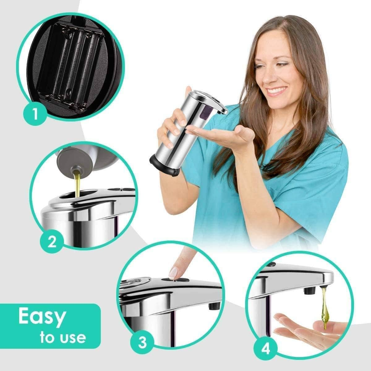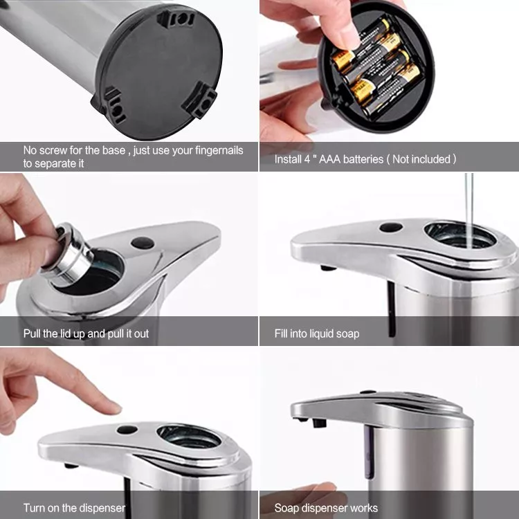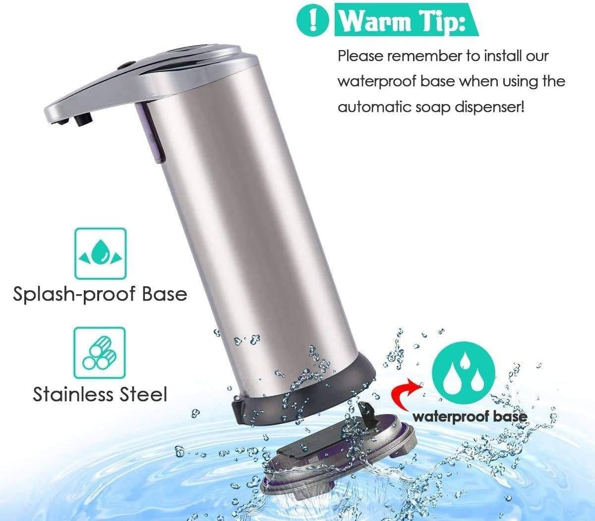 Изработен с водоустойчива основа и гумено уплътнение, този диспенсър предпазва батерийното отделение от вода, предотвратявайки евентуални корозии и неизправности. Не са необходими винтове за закрепване на основата, което го прави изключително лесен за разглобяване и почистване. Гуменото уплътнение на дъното е не само лесно за поддръжка, но и осигурява неплъзгащо се дъно, подходящо за всяка ситуация. Захранва се от 4 броя батерии тип AAA (не са включени), предоставяйки надеждна работа.