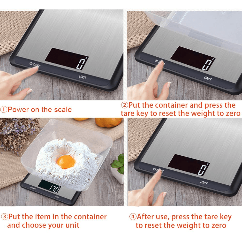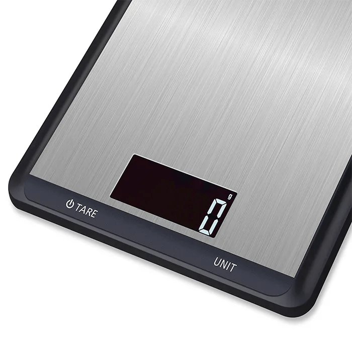 Електронната везна е лесна за съхранение в кухнята и може да се носи навсякъде. Продуктът работи с 2 батерии AAA за захранване (включени в комплекта). Яркият LCD дисплей е лесен за четене и има функция за автоматично изключване ако не се използва определен период от време.