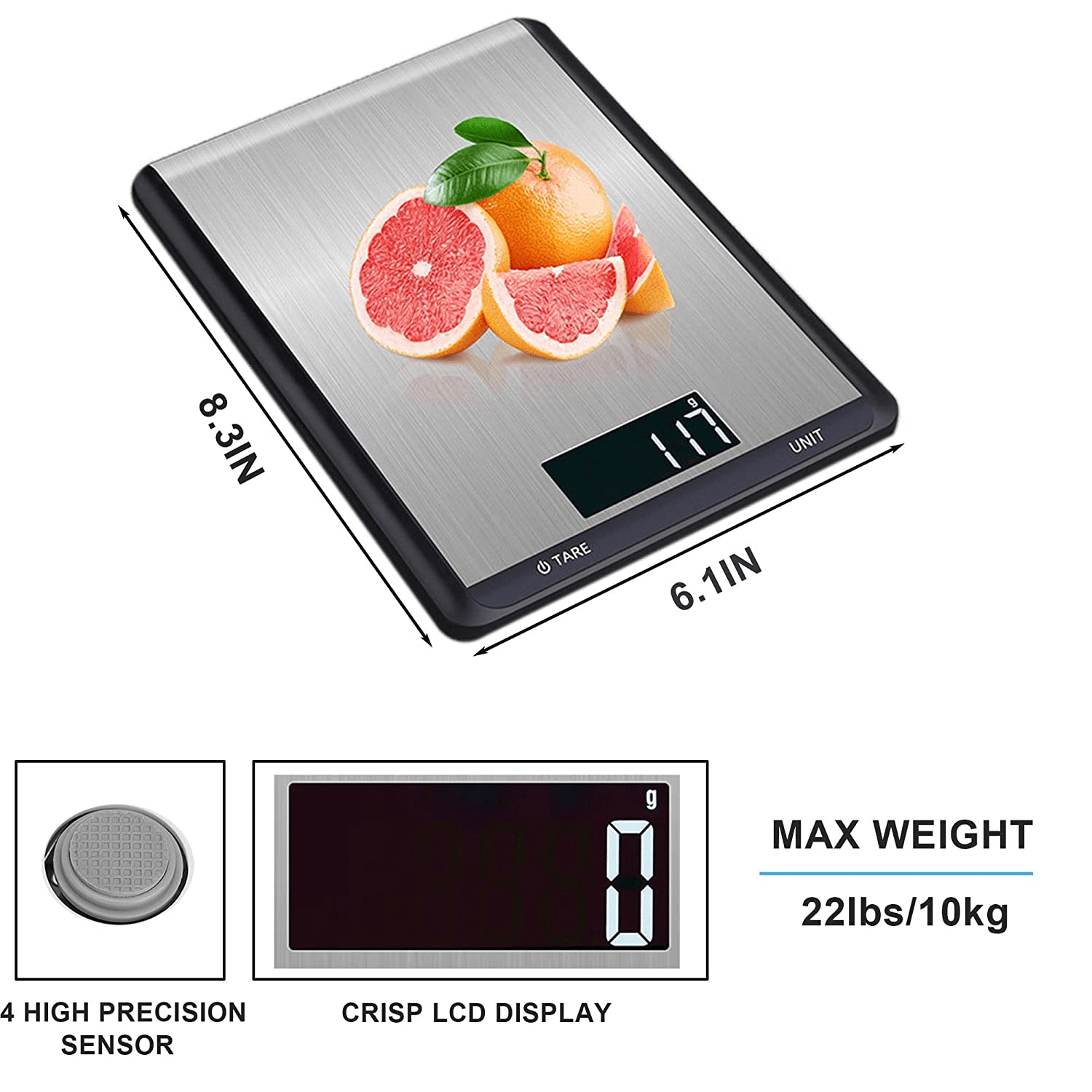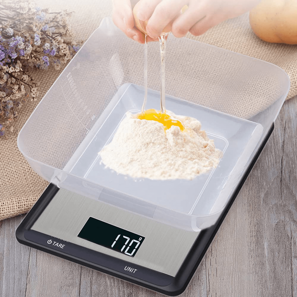 Електронната кухненска везна ScaleMate Ви помага да приготвите вкусни ястия и да спазвате порционен контрол за отслабване. Това е перфектният помощник за приготвяне на храна за тези, които са загрижени за приема на калории или диетата си, в стремежа си към по-здравословен начин на живот. Везна ScaleMate измерва с точност съставките или течностите до 10 кг. Има 7 единици за измерване: (g) грамове, (oz) унции, (lb) фунт, (tl) талии, (kg) килограми, (ml) милилитри, (milk ml) милилитри за мляко, които могат да бъдат лесно превключвани с едно докосване на бутона.