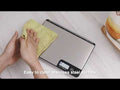 Електронна кухненска везна NutriMeasure е оборудвана с 4 вградени високопрецизни сензора за претегляне и може да измерва до 13 кг с точност от 1 гр. Тази везна за храна може да конвертира единици между (g) грамове, (kg) килограми, (lb) фунт, (oz) унции, (ml) милилитри, (milk ml) милилитри за мляко с едно натискане на бутона, което е удобно за измерване на различни видове храни или съставки.