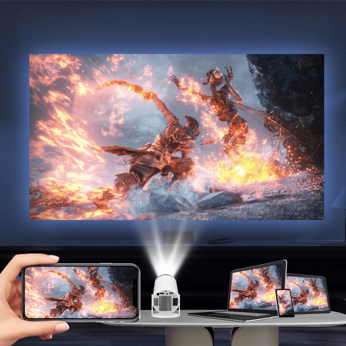 Atron HY300 е портативен проектор, разработен да преобразува вашите мултимедийни преживявания. Изработен е с усъвършенствана технология и модерни интерфейси, които ви позволяват да се свържете и да се наслаждавате на широко разнообразие от съдържание. Създаден за домашно кино, развлечения, ранно детско образование, видеоконференции и онлайн обучение, този проектор е същинска технологична революция.