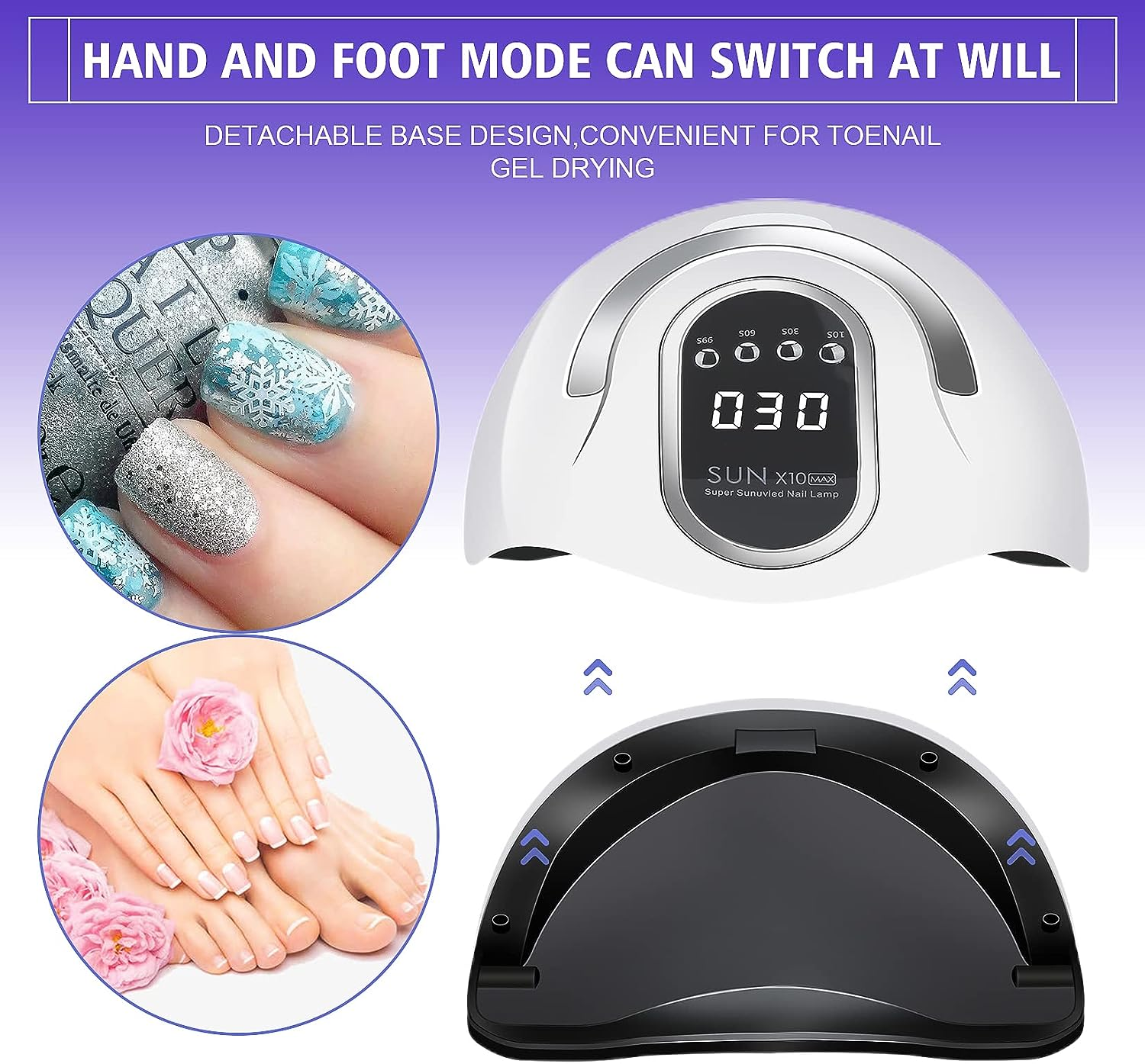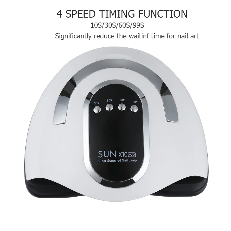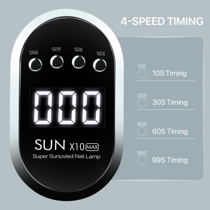 Sun X10 Max разполага с уникален дизайн на двоен източник на светлина, съчетаващ дължините на вълната 365nm+405nm. Това й позволява да суши различни видове гелове за нокти, включително LED гелове, изкуствени гелове, скулптурни гелове, лепила за камъни и други. С нашата лампа имате свобода да създадете разнообразие от невероятни дизайни на ноктите с Вашите любими гелове. Запомнете, че различните видове гел изискват различни времена за съхнене поради различни съотношения в състава им.