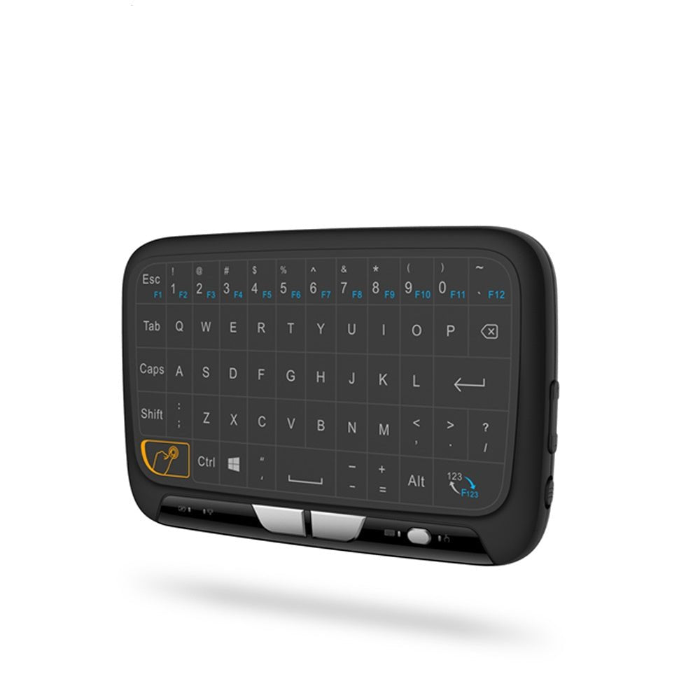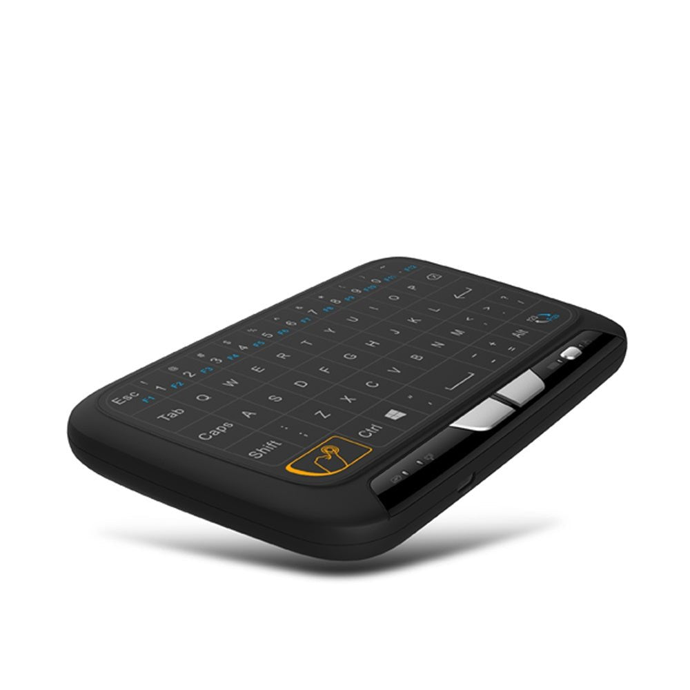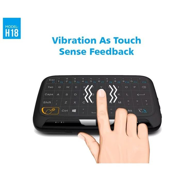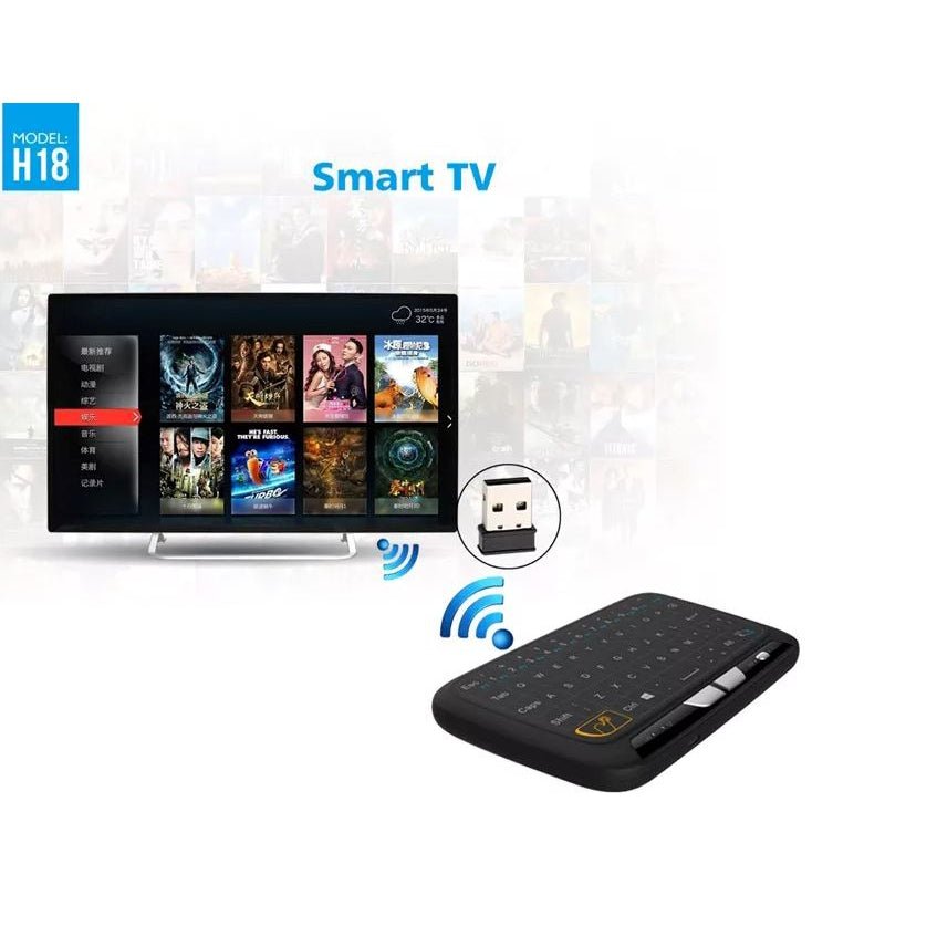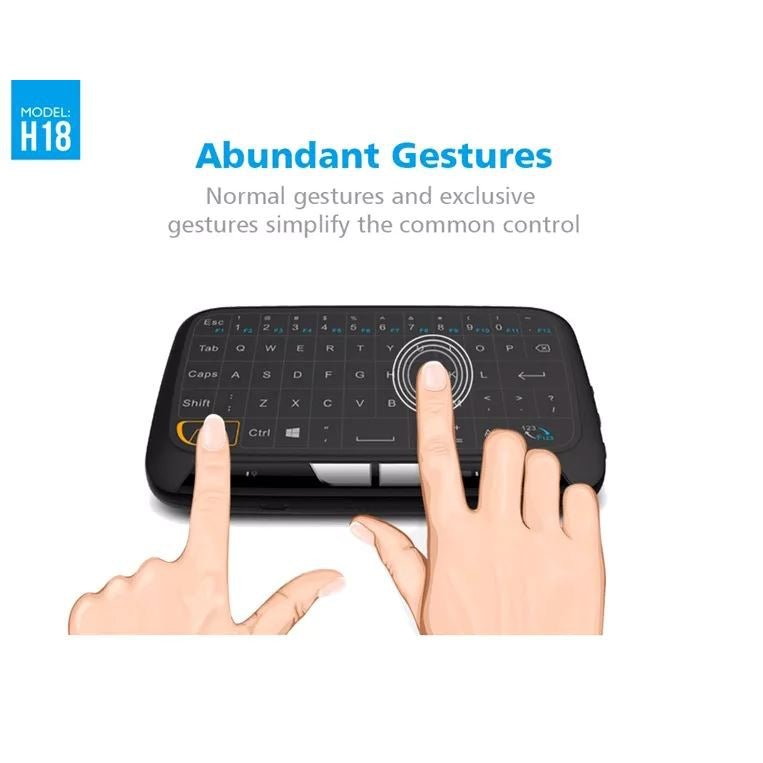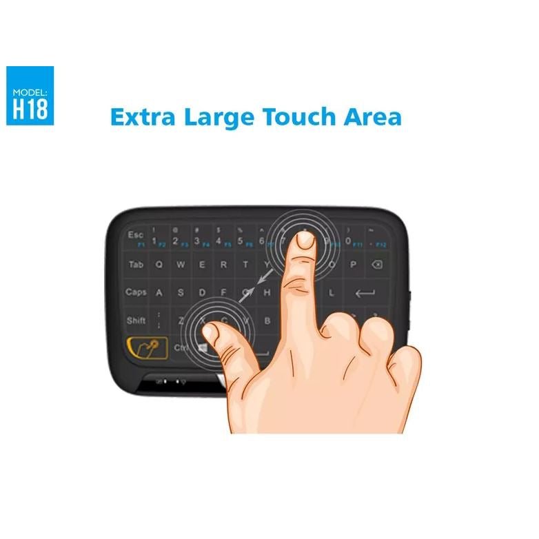 Безжичната клавиатура H18+ има функция за подсветка, която е добра за Вас да играете на тъмно, а меката й светлина няма да нарани очите ви през нощта. С 56 клавиша и 2.4GHz безжична връзка, мултитъч тъчпад и иновативно колело на мишката, тя събира клавиатура, мишка и тъчпад в едно, малкият размер включва голяма мощност. Поставете я в чантата си, удобна за използване по всяко време и навсякъде.